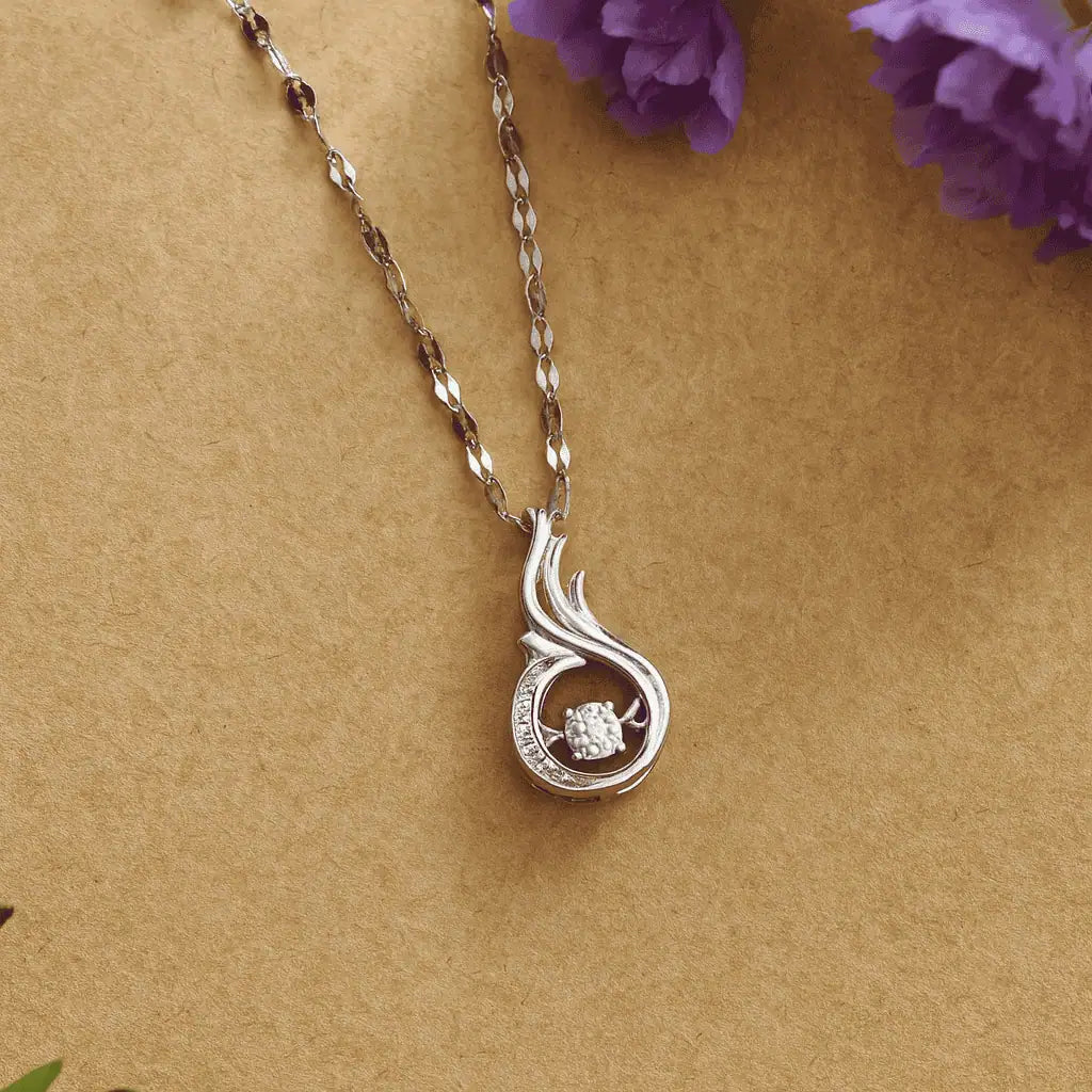 Add a touch of timeless elegance with the Eternal Flame Pendant Necklace from Charmsvilla. Crafted in a graceful flame-inspired design, this silver-plated pendant features a brilliant cubic zirconia centerpiece surrounded by delicate accents, symbolizing passion and strength. The sleek, high-shine chain pairs effortlessly with the modern pendant, making it perfect for both everyday wear and special occasions. Ideal as a gift for her, this necklace blends sophistication with versatility, complementing western and ethnic outfits alike.