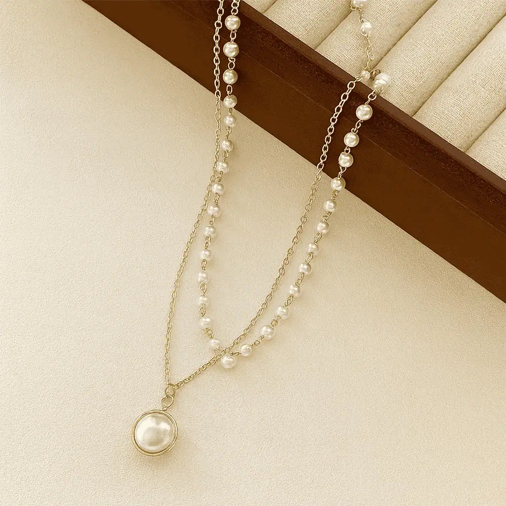 Add timeless elegance to your look with our Golden Grace Pearl Layered Necklace. This chic piece features a delicate strand of lustrous white pearls paired with a dainty gold chain and a single pearl pendant. Perfect for weddings, parties, and everyday sophistication, this layered pearl necklace complements any outfit. Crafted for comfort and style, it’s an ideal choice for women who love minimalist gold jewelry, pearl chokers, and dainty layered necklaces.