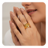 A stunning emerald ring catches the light as hands intertwine — a moment of affection highlighted by timeless luxury and sophistication.