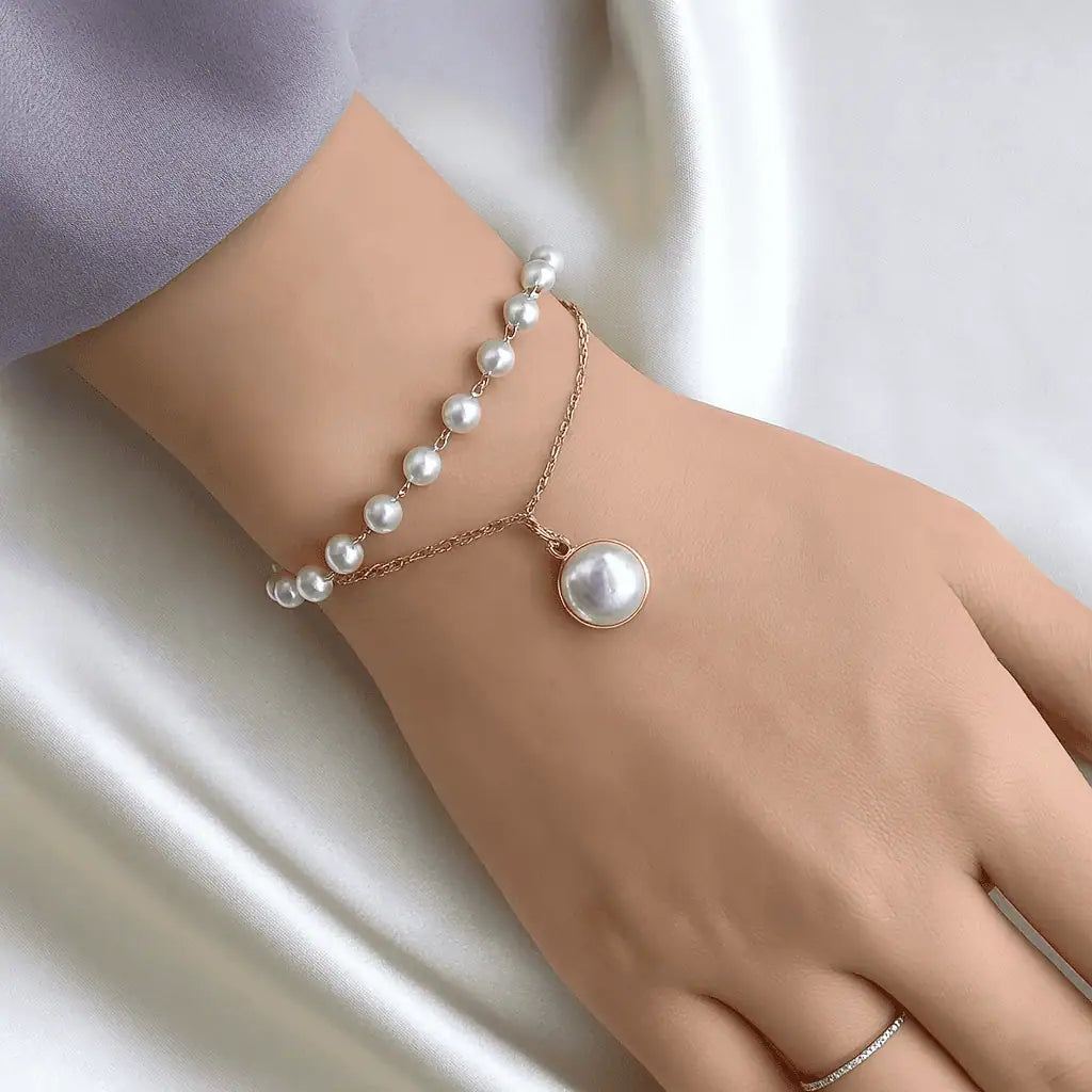 The Luna Pearl Charm Bracelet is a graceful blend of elegance and femininity, featuring a delicate strand of lustrous pearls paired with a fine gold-plated chain. Adorned with a stunning single pearl charm, this bracelet exudes timeless beauty, making it perfect for weddings, parties, office wear, or gifting. Lightweight and comfortable, it adds a sophisticated touch to any outfit. This pearl charm bracelet is a must-have for women who love classic yet modern jewelry.