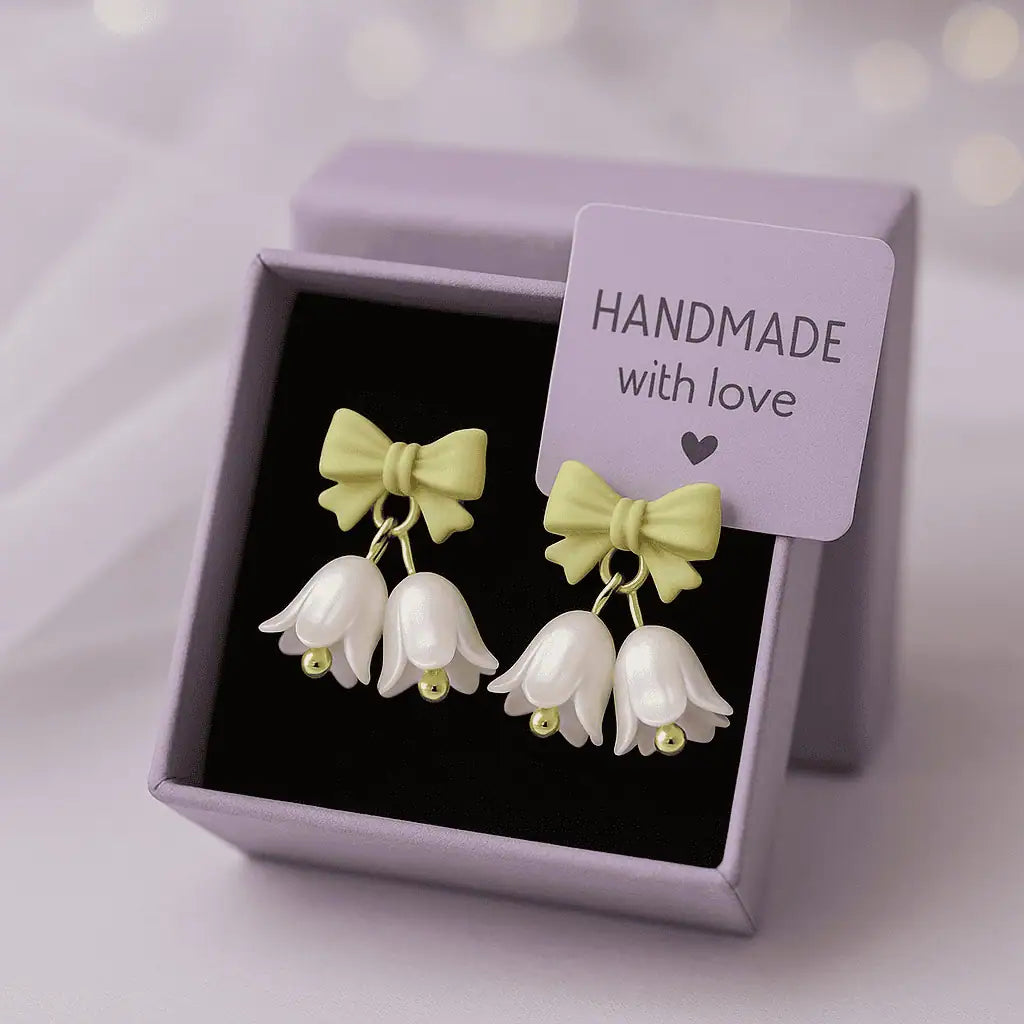 Bring fresh charm to your look with our Spring Bloom Bow Earrings, featuring a playful lime green bow stud and delicate pearl-like tulip flowers with golden bead accents. These Korean style floral earrings combine a cute and feminine design with a hint of elegance, making them perfect for spring outfits, casual wear, or special occasions. Lightweight and eye-catching, these bow and flower statement earrings are a must-have fashion accessory for women who love unique and trendy jewellery.