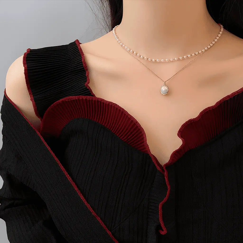 Add timeless elegance to your look with our Golden Grace Pearl Layered Necklace. This chic piece features a delicate strand of lustrous white pearls paired with a dainty gold chain and a single pearl pendant. Perfect for weddings, parties, and everyday sophistication, this layered pearl necklace complements any outfit. Crafted for comfort and style, it’s an ideal choice for women who love minimalist gold jewelry, pearl chokers, and dainty layered necklaces.