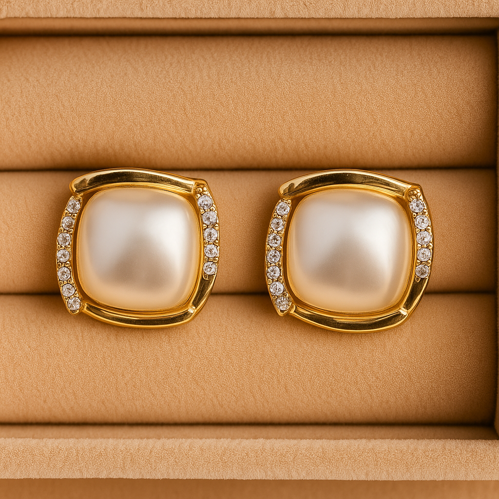 Add a touch of refined elegance with these Pearl & Diamond Stud Earrings, marrying classic glamour with modern Korean minimalism. Each pair features a luminous pearl-like center, set within a polished gold-plated frame accented with sparkling diamond-like stones. Crafted from stainless steel and enhanced with a premium anti-tarnish 18K plating, these earrings resist fading and are safe for sensitive ears (nickel-free). Perfect for elevating everyday outfits or completing special occasion looks. Lightweight and secure with push-back backs—an ideal, gift-worthy accessory.