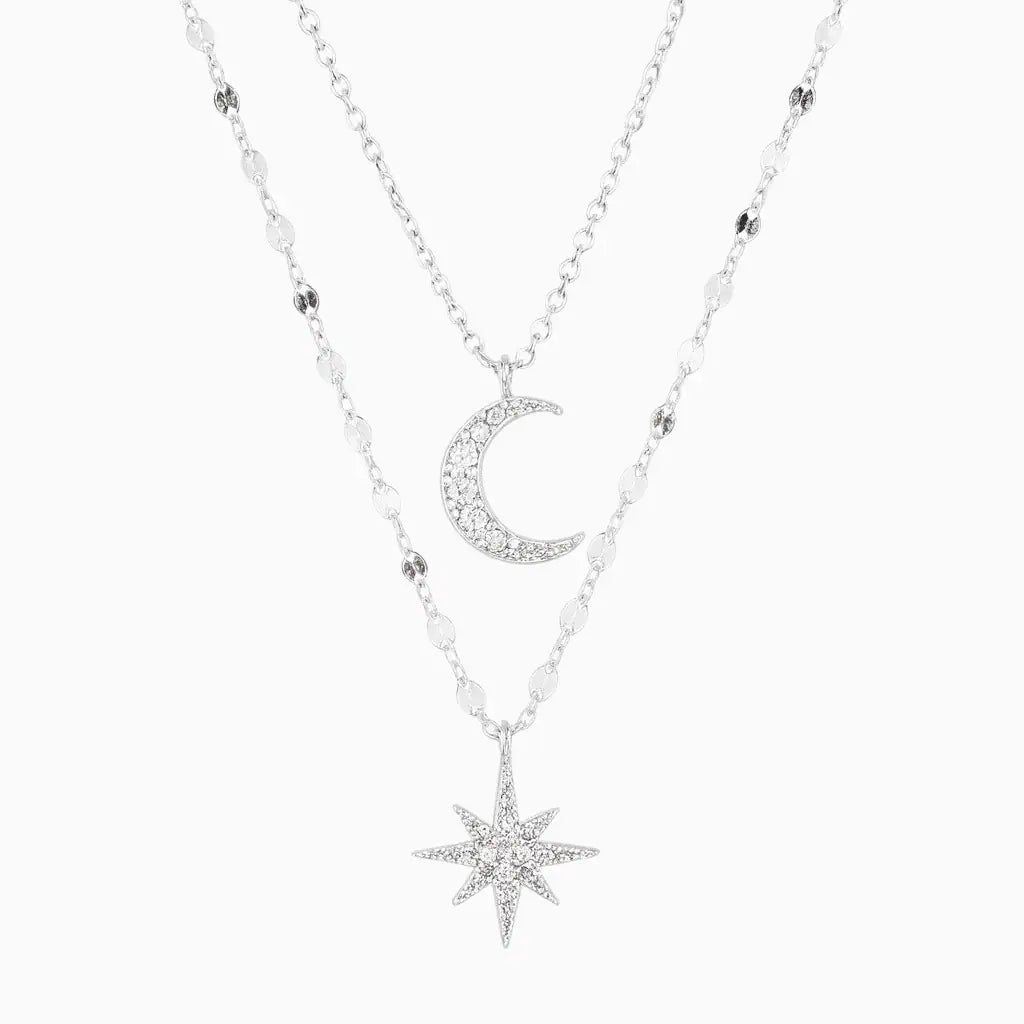 Double Layer Moon & Star Pendant Necklace