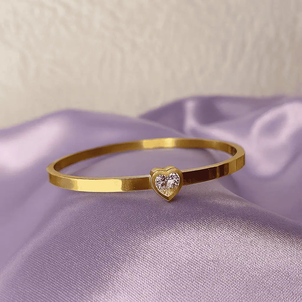 Add a touch of quiet luxury to your everyday style with this Heartstone Minimal Gold Kada Bracelet. Designed with a sleek matte-gold band and a delicate heart-shaped stone at the center, this bracelet blends modern minimalism with timeless elegance. Perfect for daily wear, gifting, or pairing with ethnic and western outfits, it’s lightweight, comfortable, and effortlessly chic. A must-have accessory for women who love subtle sophistication.